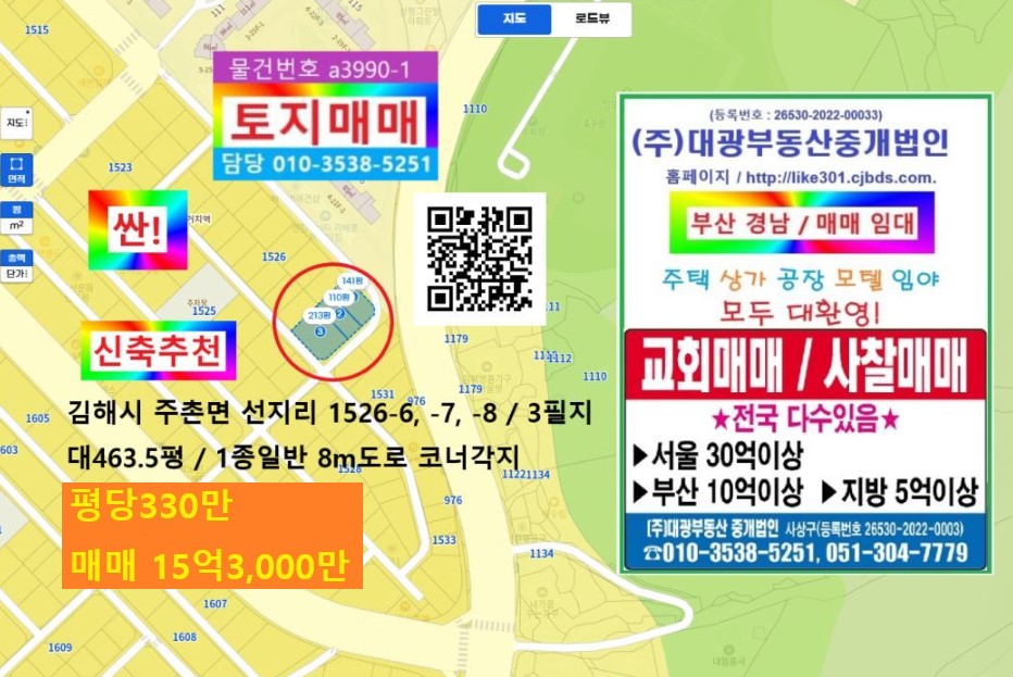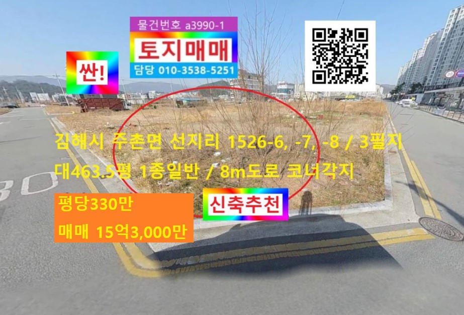 ±èÇØ½Ã ÁÖÃÌ¸é ¼±Áö¸® 1526-6, -7, -8 / 3ÇÊÁö / 1Á¾ÀÏ¹Ý 8mµµ·Î Äڳʰ¢Áö